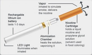 An e-cigarette is a device that allows you to inhale nicotine in a vapour rather than smoke.